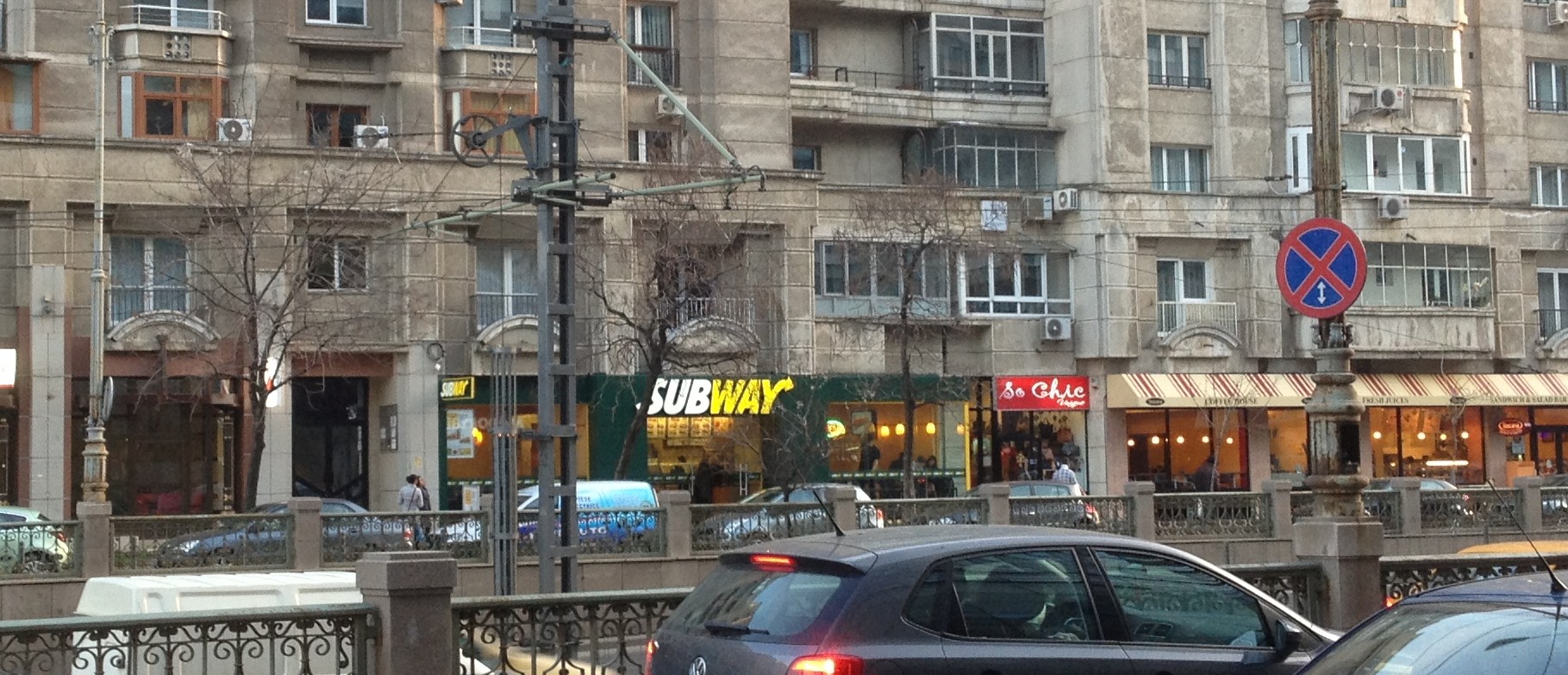 After this, we walked down the street adjacent, and we walked past Subway. Now, in the UK, walking past Subway isn’t a big deal. There are hundreds of the ‘healthy’ fast food joint. I won’t comment on the other UK franchises that have popped up over in Romania, but Subway is a different story. The first Subway in Bucharest opened almost a year ago to the day, and at that time, Tudor was living in Cardiff, where of course we have our fair share of Subway shops. He told us and showed us pictures of people queuing out the door and up the street of Subway. It was apparently the place to be seen. We walked past the only other Subway in the city yesterday and it was part of a posh department store. It’d be like seeing Subway attached to House of Frasier at home. This one is in a fancy part of town too. Well, this story became a bit legendary for me, so I felt I really needed to share the excitement of seeing the first ever Subway in Bucharest!
